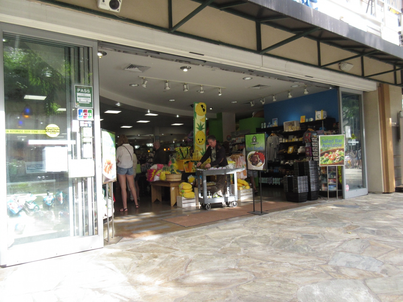 カラカウア通りに面し、DFSの近くにありロケーションはとてもよい。一見するとお土産やさんに見えるが中は広く、スーパーになっている。お寿司はあるが豆腐、納豆はない。poke丼がよく知られ色々な種類が揃っている。具材のみも購入できる。