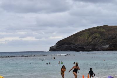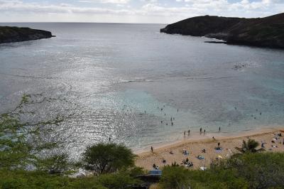 ワイキキからザ・バスの22番で行くことができる。始発の22番バスの乗り場は時々変わるので旅行案内書の情報ではなく現地で調べる必要がある。グーグルマップの情報も違っていた。40分くらいの乗車時間で湾に着く。カルデラが海へ沈没してできた湾で、元は噴火口。海底が入り組んでいるのか海の色が場所によって異なり美しい。浜へ入場するための入場料が$7.5かかる。浜から入り口へ戻るトロリーがあり急坂を歩かずに上がることができる。