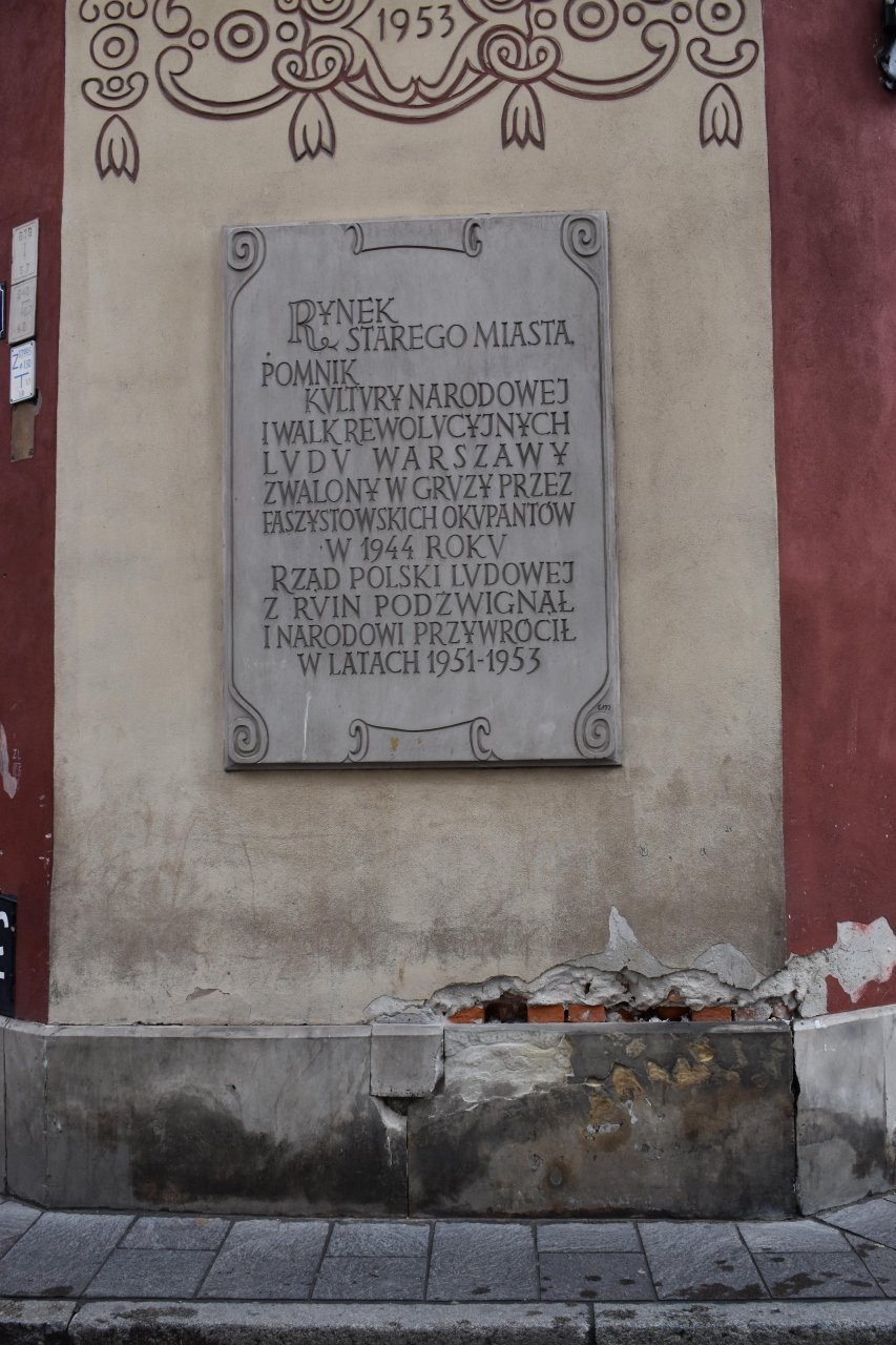 1944年のワルシャワ蜂起が失敗した報復で徹底的に破壊された街を見事に復元している。「たぶん戦争前の世界に戻っている」というような迫力を街から感じた。旧市街広場の建物の一つに解説をした壁がある。多くの人々の再建への思いを感じる街である。