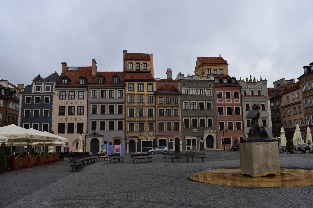 旧市街広場の真ん中にブロンズ色で左手に盾を持ち、右手に剣を持って立っている。人魚と言うよりは勇ましい女性兵士のように思えた。コペンハーゲンの人魚像と全くイメージが異なる人魚像。ワルシャワの人魚伝説に基づいている。紋章でもあり大事な像。朝掃除の人が来て周囲を綺麗にしていた。