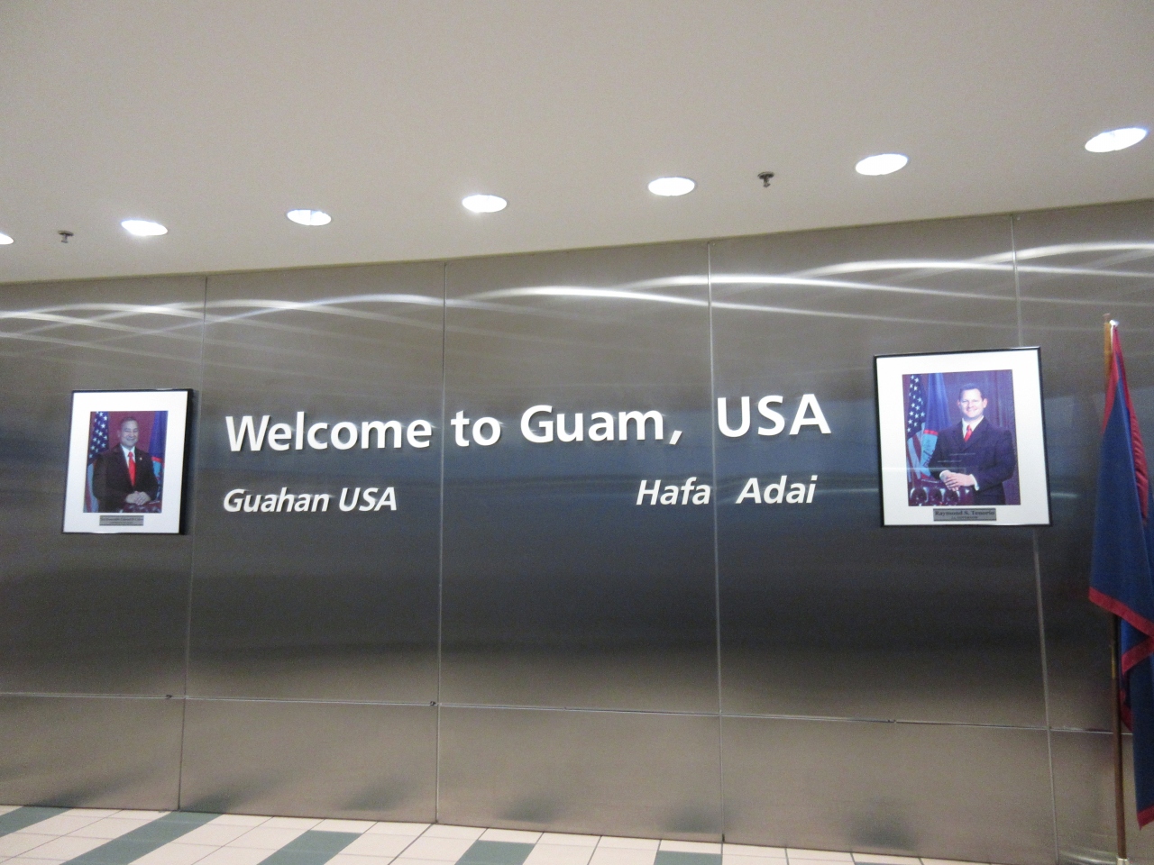 グアム島自体が小さな島なので、空港も小さい。しかし、設備は揃っていてPBBで飛行機とゲート間を移動できる。最初に「グアムへようこそ来てくださいました」の表示が目に入って来てほっとした。ESTAを所持しているか否かで入国時のラインが異なり、ESTAがあるとかなり有利。長い列に並ばずにすぐに入国できた。荷物は早く出てきた。