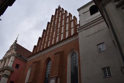 王宮から旧市街広場へ向かう道を入ってすぐ近くの所にある。道幅が狭いので教会を正面から撮ることはできない。煉瓦の茶色のファサードが特徴的な教会。国王2人が戴冠式をここで行っている。朝早く訪れたので開いていなかった。