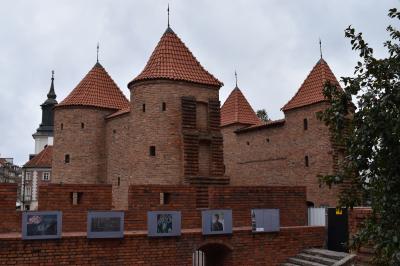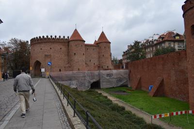 旧市街広場から行く道の先には白い壁が立てられていて工事中で中には入ることができない。門に向かって左側の城壁に沿って進むと、渡ることができる橋がある。途中でレストランの建物ような所を通過するが、反対側に出られる。バルバカンの外見は見学可能。見応えはある。