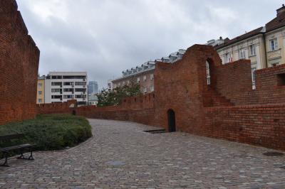 城壁が残っているのは旧市街広場を中心して約半周。範囲はかなり狭いという印象を受けた。高さもそれほど高くない。茶色の煉瓦が積まれているように見える。第二次世界大戦で破壊されているので積み直したものだと思う。