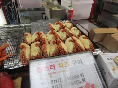 市場の端から端まで歩いても15分かからないと思われる限られた道路に食料品、衣類など生活に必要な品物が店先に山と積まれているのには驚いた。酒のつまみになる食料品も数多く売られていて、いい匂いがして食べ歩きができる。通りの真ん中には座る椅子が用意されている。西帰浦市の人口は22万人とガイドさんが言っていたが、人口には合わない賑わいようである。外国人を多く見かけた。日本円が使える店はなかった。
