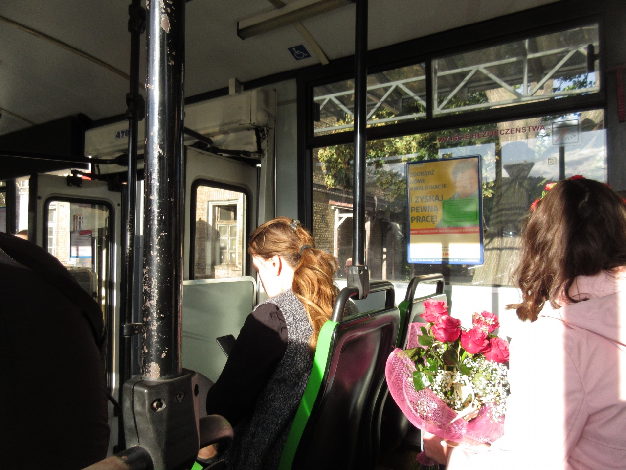 旧市街へ出るためには22,27番のバスに乗り、7,8分位で旧市街が見えるバス停に着く。ヴィスワ川を渡ると旧市街が見えて来るのでとてもわかりやすい。花束を抱えた女性が乗っていた。ヨハネ大聖堂で結婚式が行われるのでそのための花束だったようだ。和やかな気持ちになった。