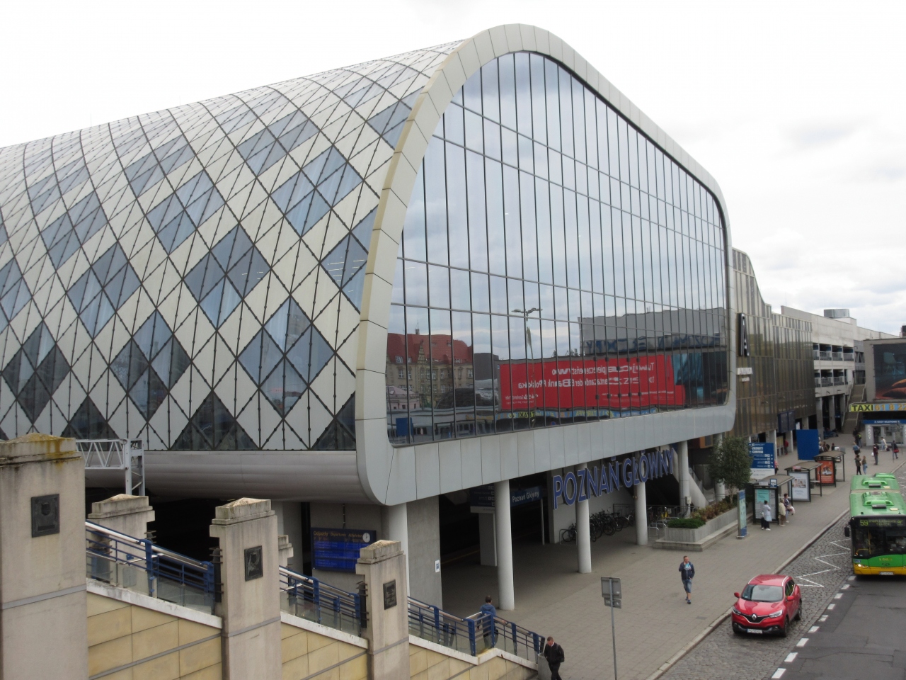 鉄道の切符売り場は地下の通路にある。駅ビルは近代的な建物でコインロッカーや店があり、荷物を預けたり買い物ができたりして便利である。駅の外へ出ると鉄道をまたぐ橋があり橋を渡った所にポズナン大聖堂へ行くことができるトラムの駅がある。