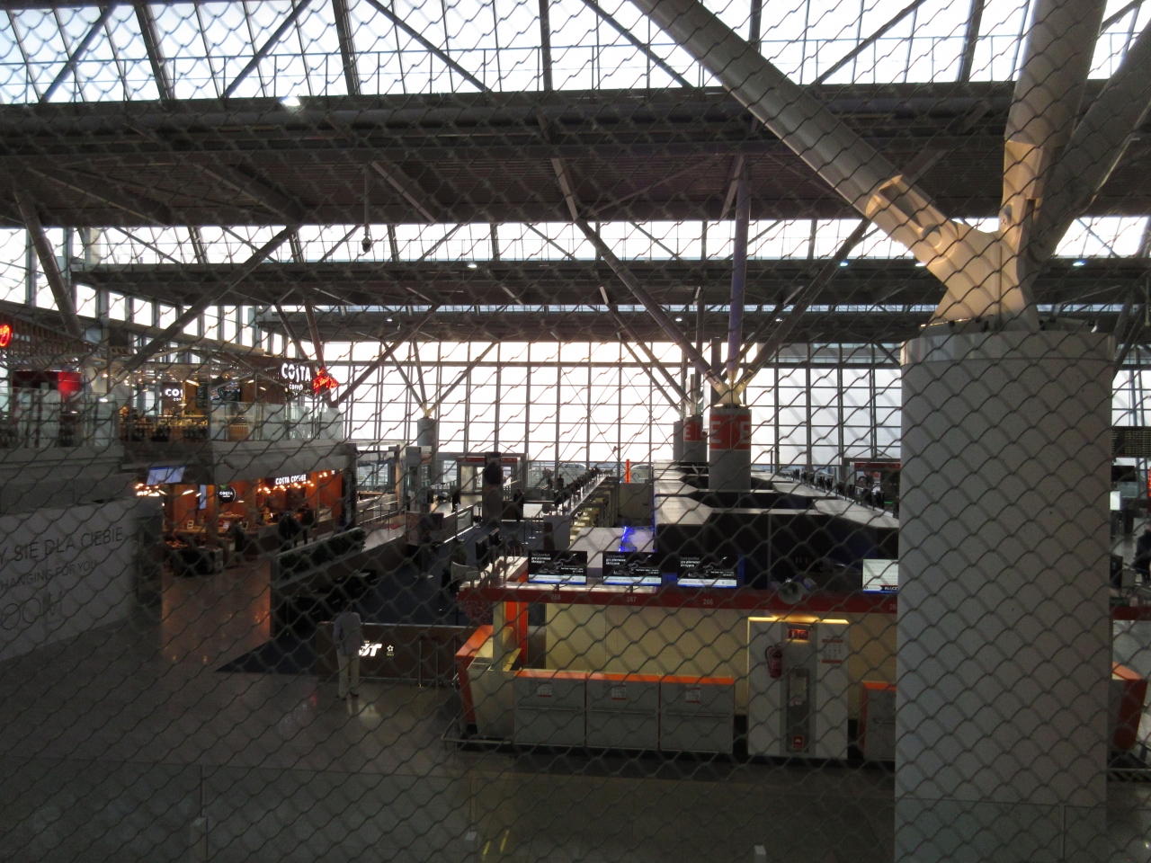 市内からタクシーだと40ズォティで行くことができる。空港は思ったより広くゲイトまで行く時間を多く見込むとよいと思う。荷物が出てくるのに時間がかかった。途中でターンテーブルが2回止まって待たされ、予定していたICに乗れなかった。