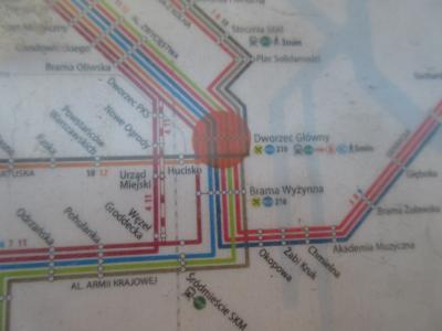 ポズナンへ行く切符を当日買うには時間がかかることが想定されるので、翌日の切符の購入をダメもとで窓口に並んだところ、購入することができた。旧市街へ行くバスは10分おきに出ている。駅は閑散としているがバス便は頻繁にあった。