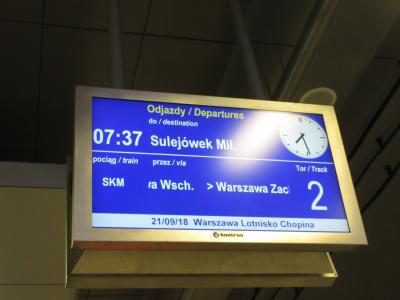朝の時間帯には20分間隔で走っていた。SKMのS3はワルシャワ中央駅に行くことができるが、行くことができない路線もあるので注意が必要。チケットの購入に手こずった。券販機の案内がわかりにくい。車内は空いていた。