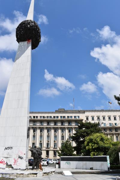 ルーマニア革命のために命を落とした人々を慰霊するために建てられている。高い塔である。上の方に黒い丸い固まりがありそれを突き刺して塔が伸びている。黒い固まりの部分からは赤色の流れ出した液体のような物がペイントされていて、革命の壮絶さを連想出来る。