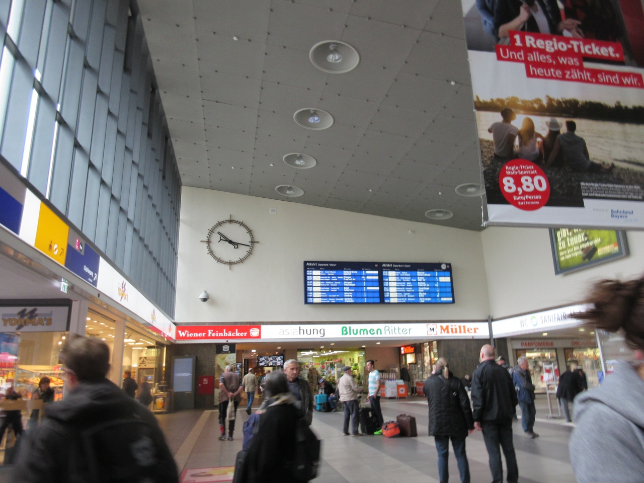 一地方のごく普通の駅だと思う。特徴的だったのはトイレが無人になっていて、入る時に1ユーロコインを機械に入れると、50セントおつりが出るのではなく、50セントのもう一回利用券が出てきた。券を利用しない場合は1ユーロ払ったことになる。