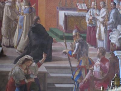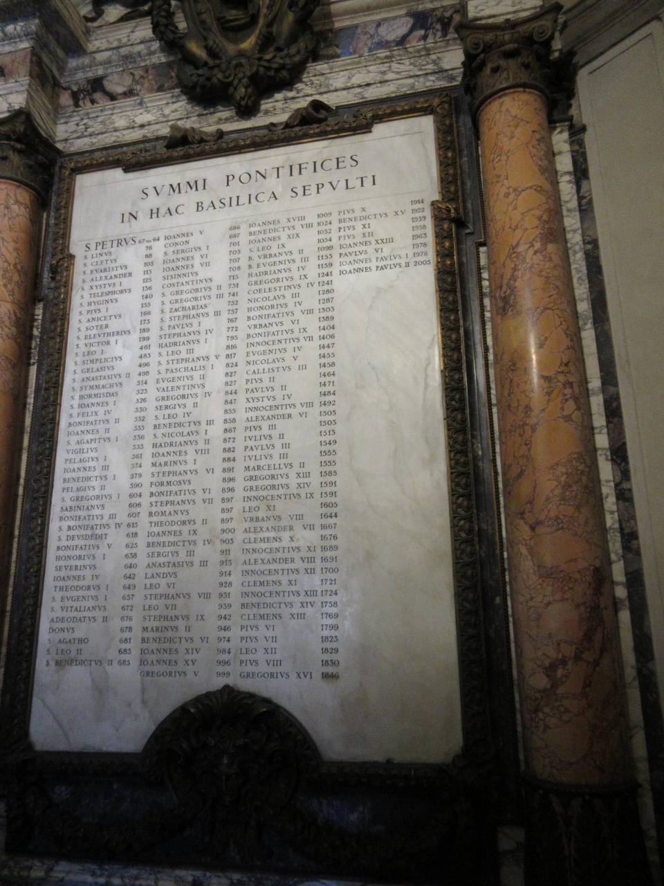 寺院の中には歴代法王の墓があり、荘厳な礼拝堂である。厳かな雰囲気が漂っていた。法王の名前が刻まれた版があった。初代は4世紀で歴史の重みを感じさせた。早朝に訪れることを勧める。昼にはバチカン市国の入り口の所まで行列ができていた。