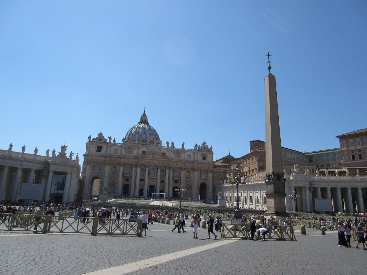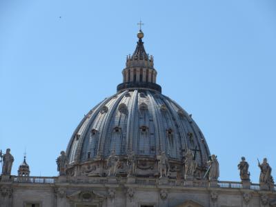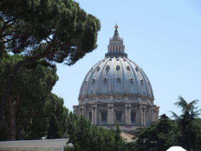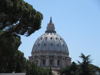 ヴァチカン庭園からサンピエトロ寺院のクーポラだけは大きく見えます。それだけ高く大きいクーポラです。ミケランジェロが設計したと言いますが大きさには驚きます。クーポラには上ることが出来て、バチカン市国の全景を見渡すことが出来ます。早朝に訪れないと寺院に入るのに、かなり並ぶことになります。