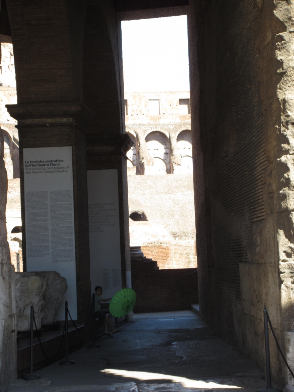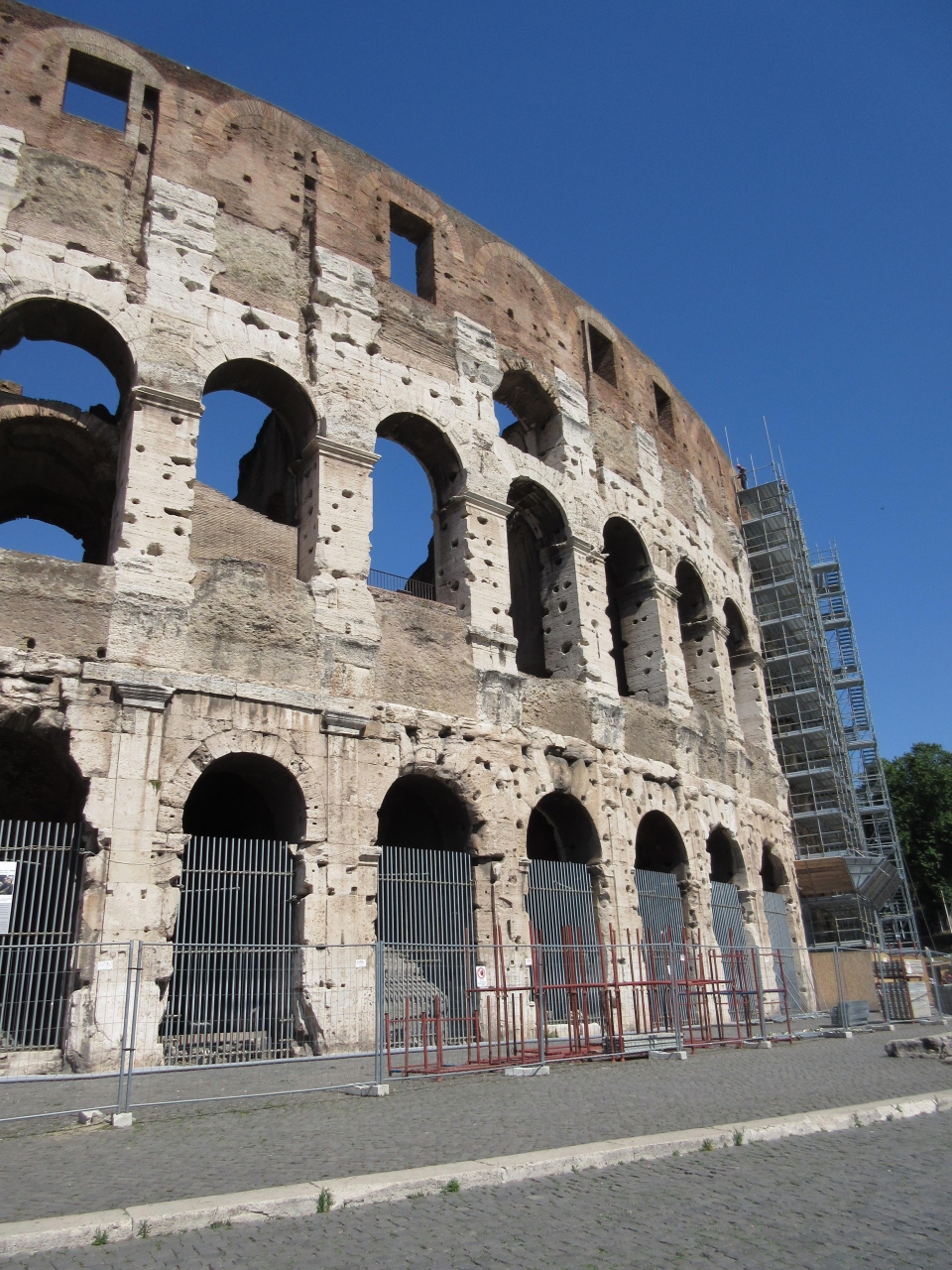 ネロ帝の黄金宮殿の庭園にあった人工池に建設された。池の水を抜くだけで済むので、基礎工事をいくらか省略することが出来たという。高さ48mある鉄骨を使わないローマン・コンクリートであるが地震で崩壊しないのはとても不思議である。円筒形で、力学的に安定しているからだという。上の方は採石されて切り崩されているが、なぜかとても整った形に見えるのは私だけだろうか?