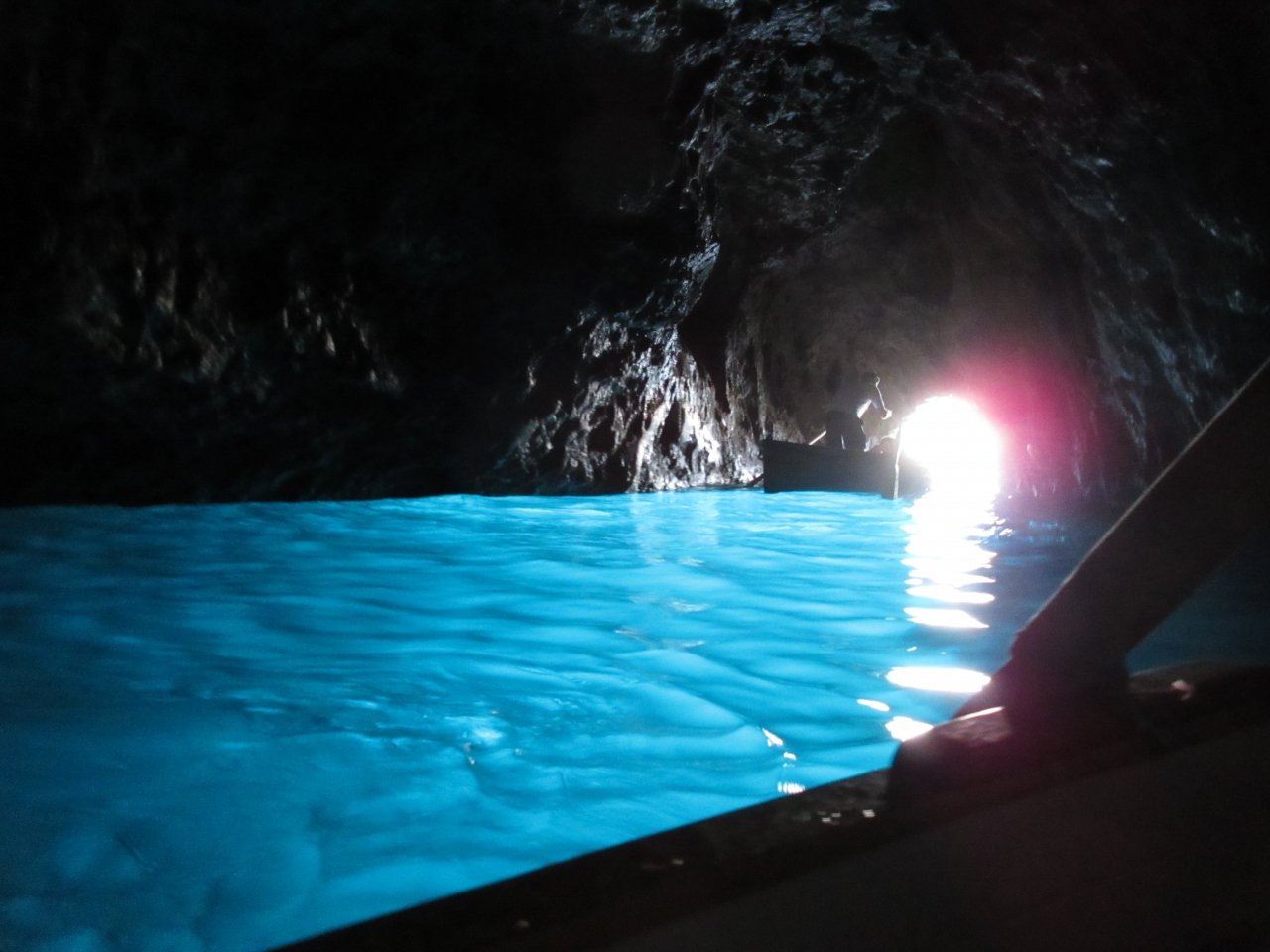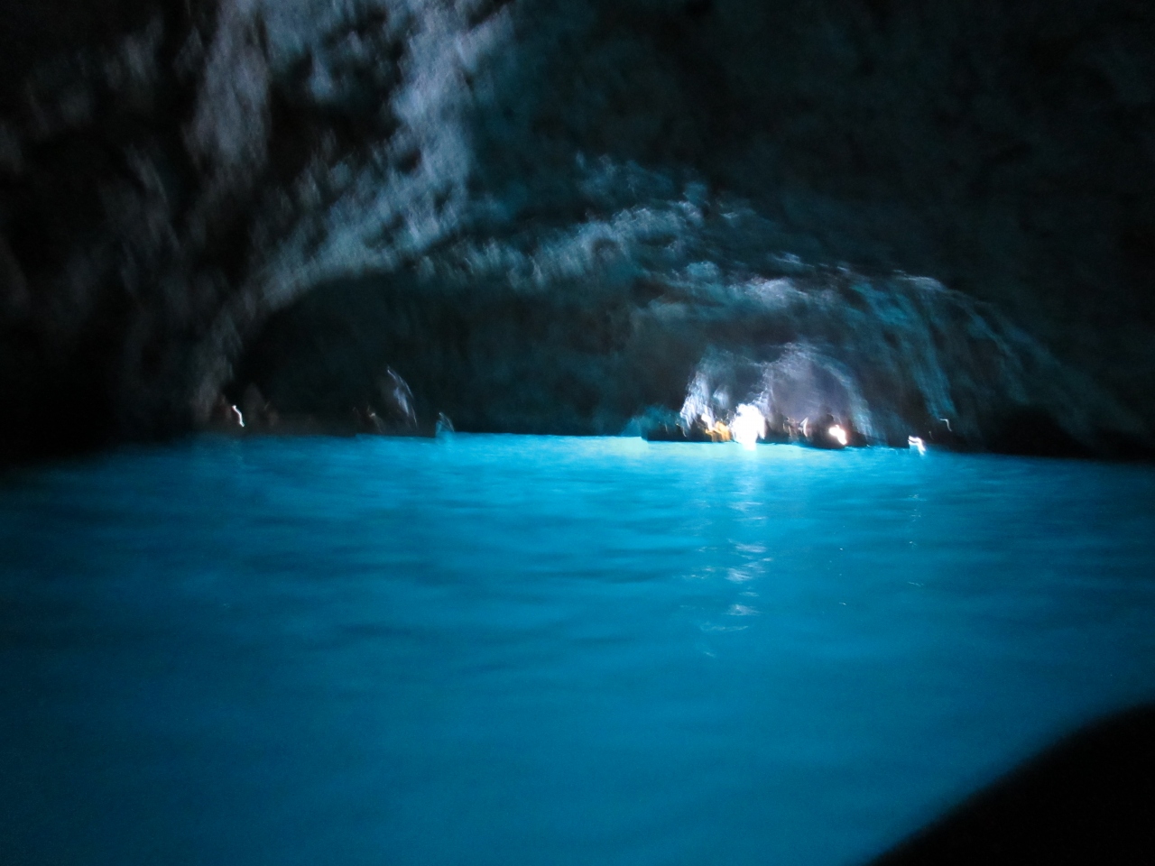 写真を見ていただくとわかるようにとにかく美しい青です。小舟で1mくらいの穴の入り口から入ります。神秘の世界です。洞窟の中で泳いでいる人がいました。「地球上で一番美しい青」だと私は思います。