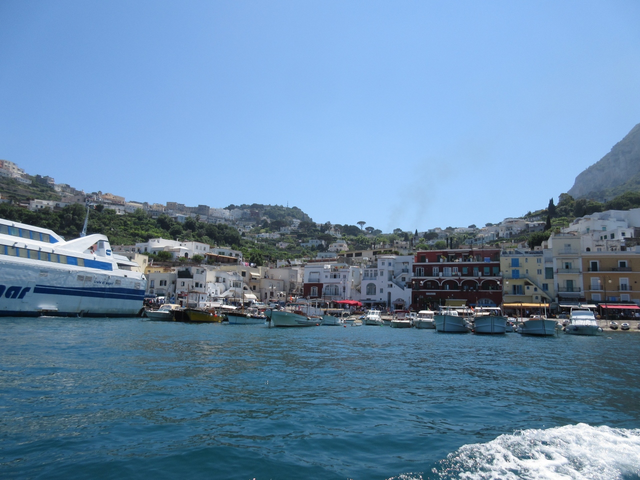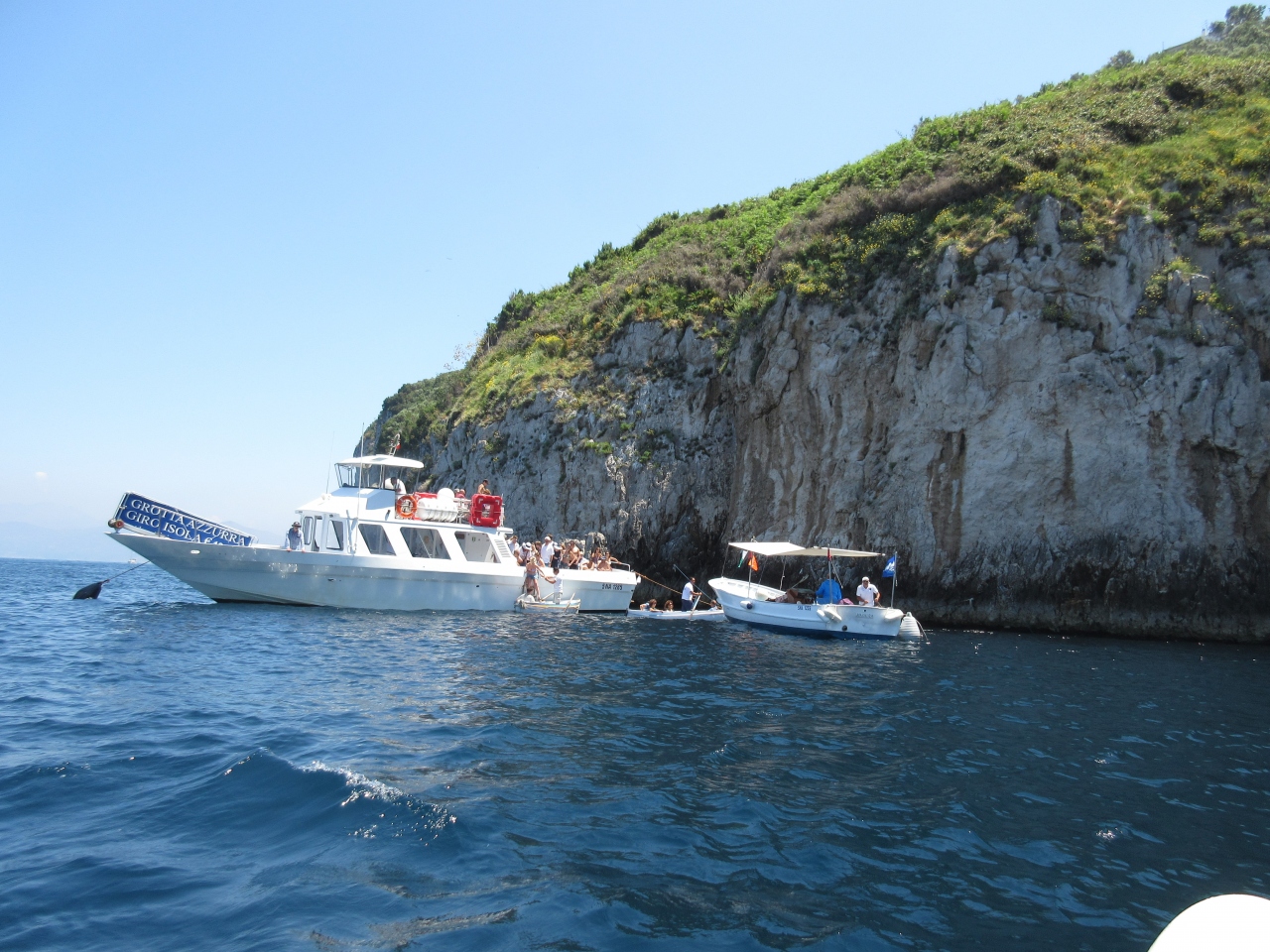 ローマからの一日ツアーでカプリ島の青の洞窟に行きました。ローマからナポリ港まで約3時間かかります。高速道路なので渋滞はありません。途中でトイレ休憩があるので安心です。ポンペイ遺跡に行くツアーと一緒のバスで、私はナポリ港で降りました。残った人はポンペイ遺跡に行っています。