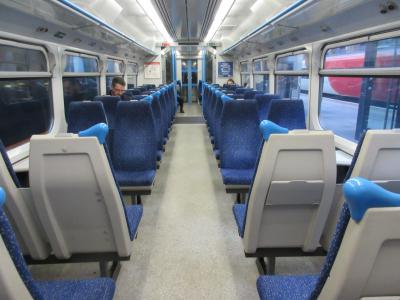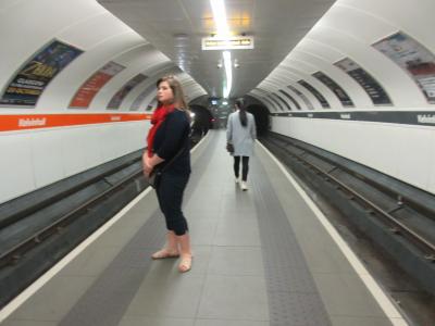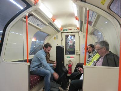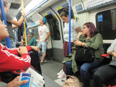 ロンドン市内を移動するために、あまり混まない時間帯に利用すればとても便利だと思う。車内の天井はドア近くで下がっていて斜めになっている。日本の地下鉄に比べて幅が狭く真ん中に立って乗ることは難しいように思う。