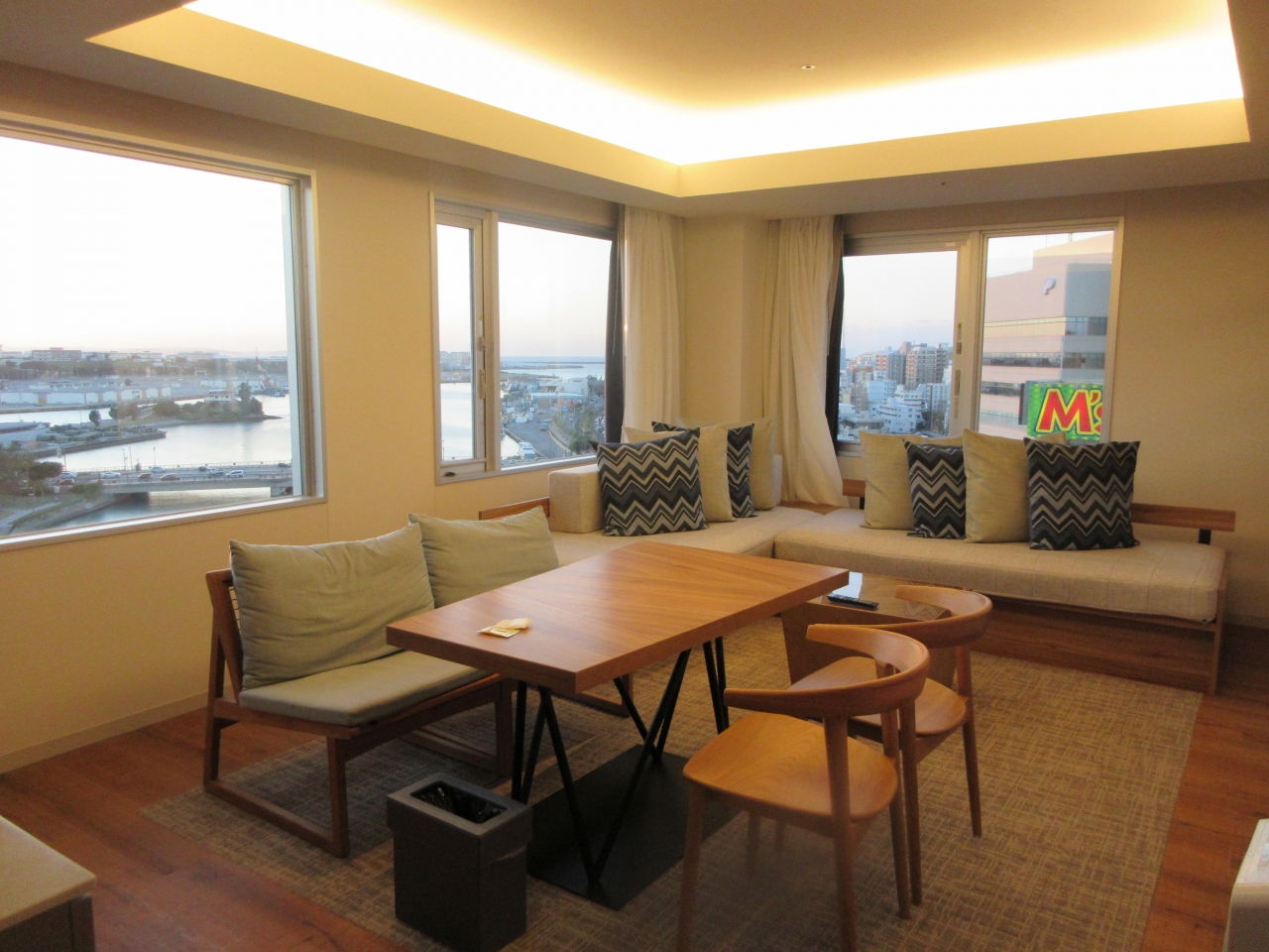ゆいレールの壷川駅から徒歩3分のホテル。バスターミナルの旭日橋には徒歩5,6分で行くことができる。ミニキッチン、洗濯機、乾燥機の設備があり長期滞在にもお勧め。隣のビルがドン・キホーテで食料品も手に入る。リバービューの部屋からは海が見える。朝食に海鮮丼用のお刺身、沖縄の郷土料理が用意されていてビュフェで食べられる。