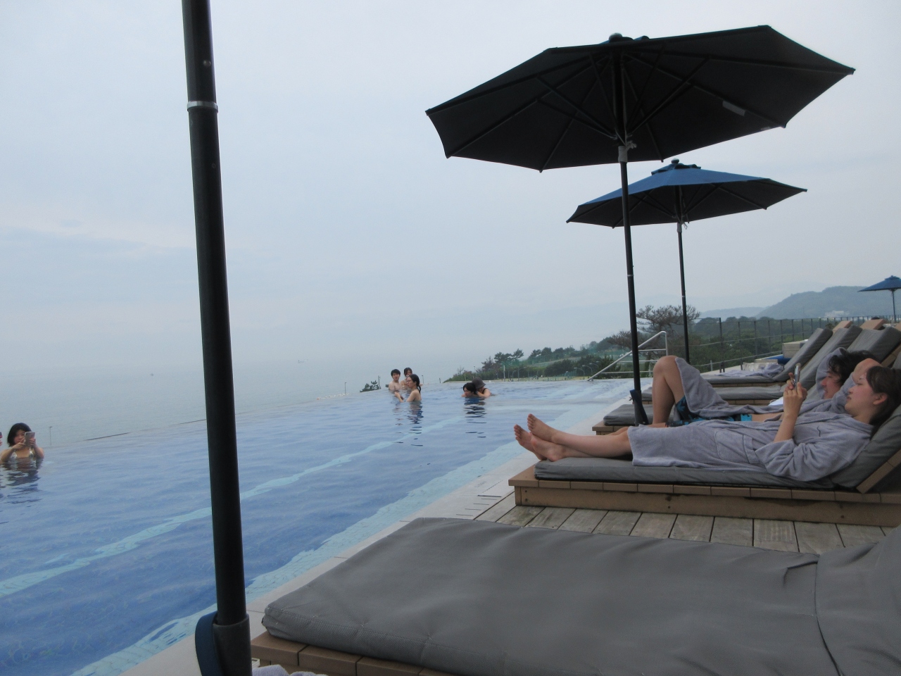 訪れたのは6月中旬なので、インフィニティプールに入ってみました。海とプールとの境目がなくなり、まるで海で泳いでいるかのような写真を撮ることができました。温水なので温かく、プールの外へ出てもさほど寒くはありませんでした。プリンスポイントを集めると宿泊が無料でできます。エスダイニングで食事をしましたが、なかなか洗練された味で美味でした。レストランもポイントを使うと無料になります。