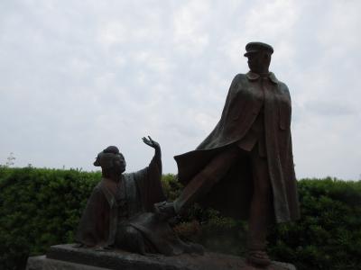 下駄で女性を足蹴りにするこの像の姿は現代では考えられないが、人間関係の本質の一つを表しているのかもしれない。- 旅行時期