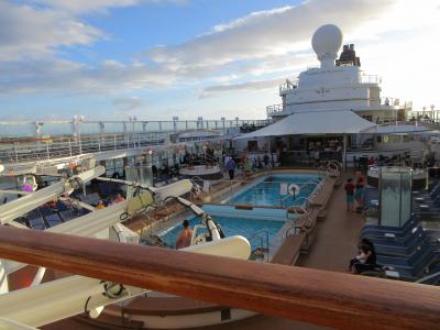 毎週土曜日の朝7時にホノルル港に入港し、午後7時に出航して、マウイ島、ハワイ島、カウアイ島を一週間かけて廻り、再びホノルルに帰ってくるクルーズ船。ホテルランクは5つ星に相当する。島巡りをしながら料理やイベントを楽しめる。寄港地ツアーの種類はいろいろあった。レストランの鉄板焼きはパーフォーマンスがおもしろい。ハリウッドシアターもかなり本格的で楽しめた。フラレッスンの教室があり、レッスンを続けて受けると卒業発表会に参加でき、ハワイ大使の卒業証書がもらえる。日本人スタッフが乗船し、クルーズ乗船に関する説明会を船内で開いている。トラブル等に適切に対処する体制があり安心できた。