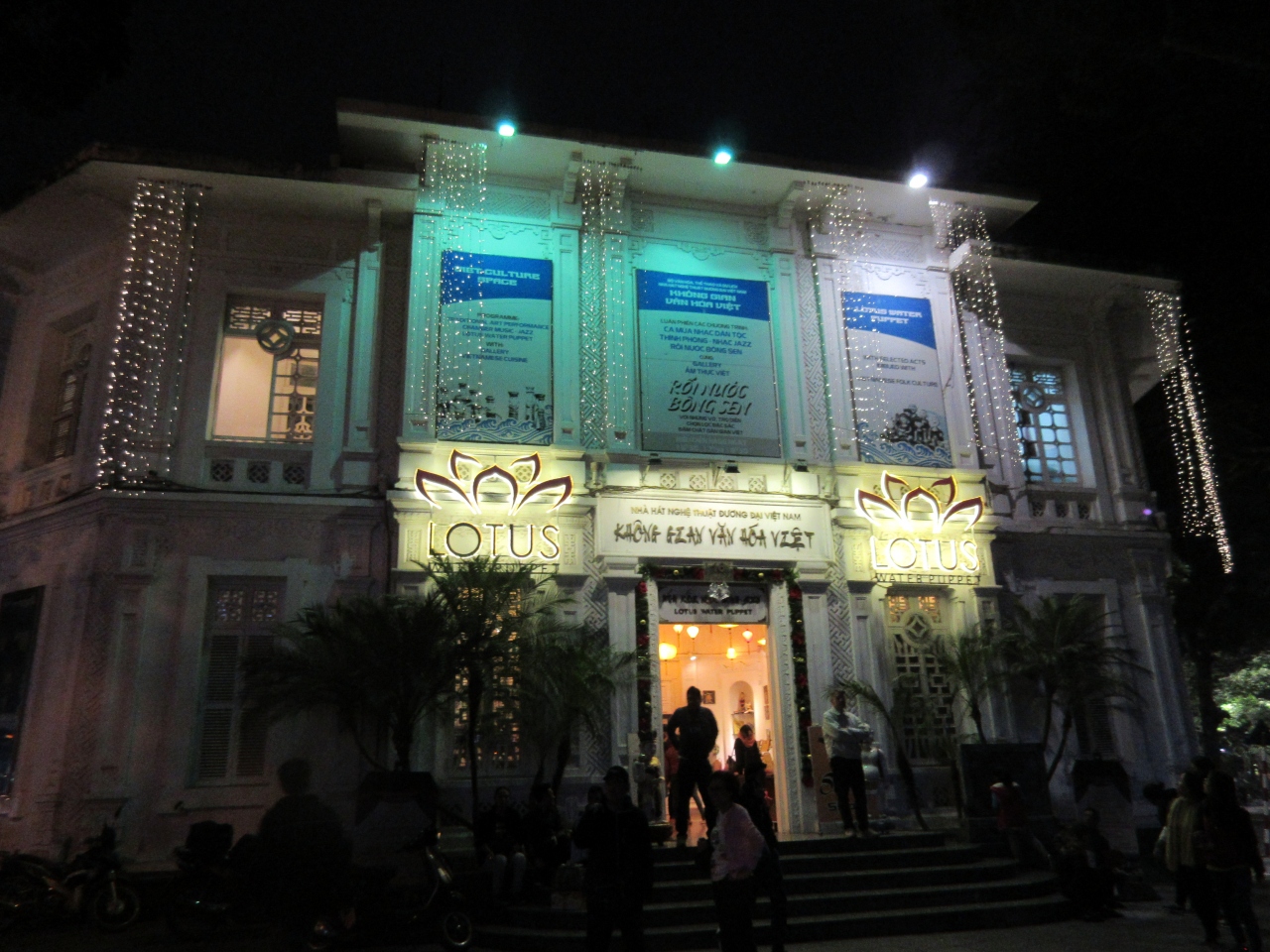 ホアンキエム湖の畔にある。あまり大きくない劇場であるが、人形を動かす技術は素晴らしく1000年の歴史を感じさせる。日本語で演目を書いたパンフレットがある。上演時間は50分。開演時間より早く行かないと良い指定席は取れない。