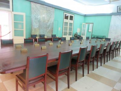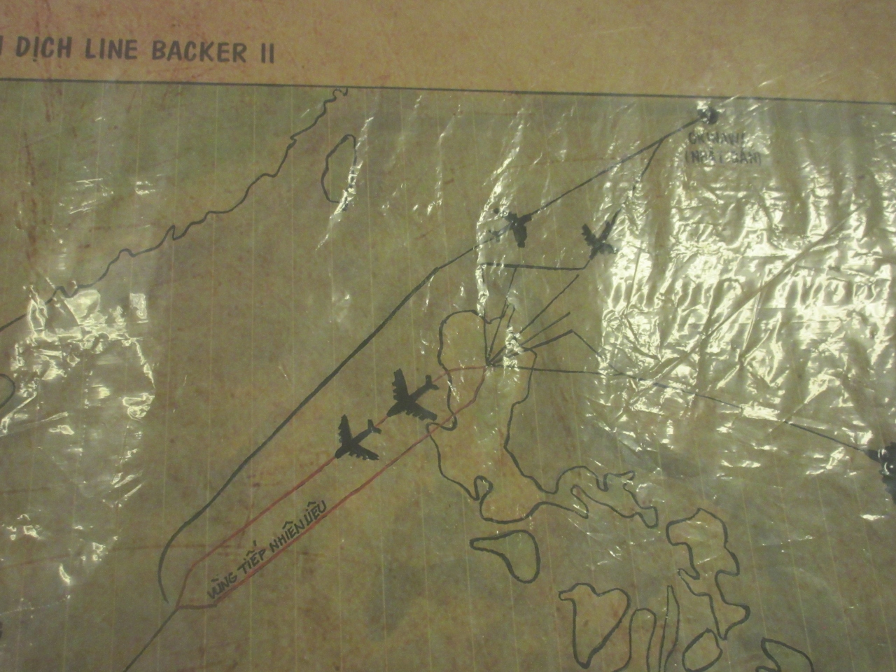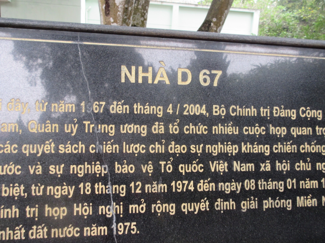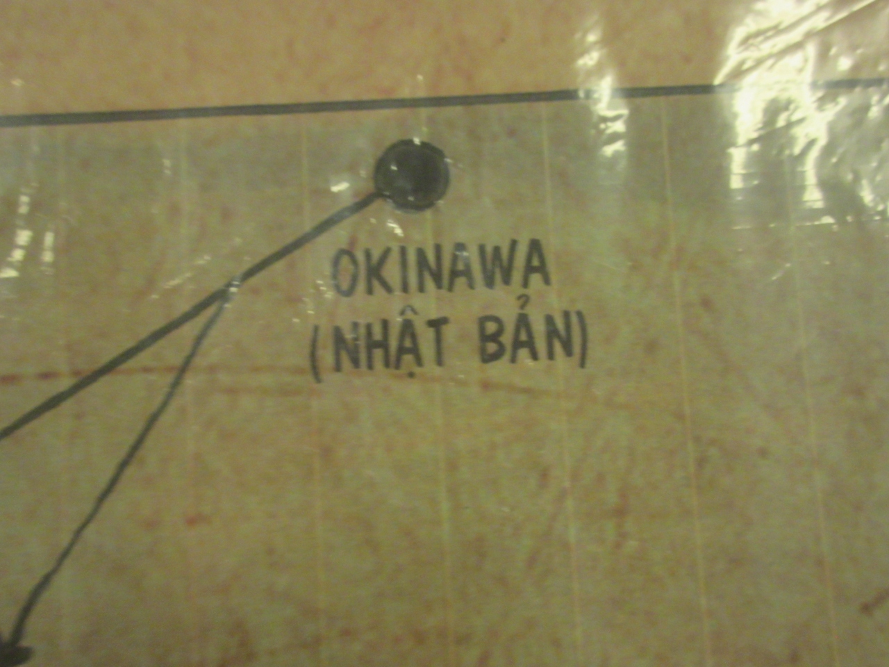 タンロン城の敬天殿(皇帝の宮殿)の裏手にD-67と書かれた石碑がある。建物の中に入って見ると会議室になっている。ベトナ戦争の作戦司令部である。地下室に入ると、やはり会議室があり壁に手書きの地図があって「OKINWA」と記入されていて飛行機が爆撃をする予定が書かれている。