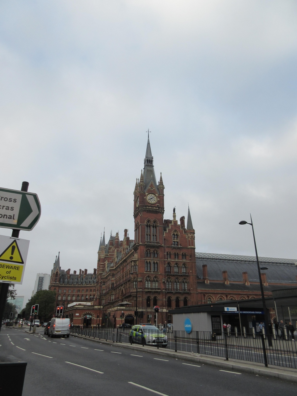 キングスクロス駅に隣接している駅。キングスクロス駅を出て右手に教会が見えたかと思ったら、なんとセントパングラス駅であり驚いた。塔はさながら教会と見間違えてもおかしくないほど高い。美しい駅である。今までの駅のイメージか変わる。