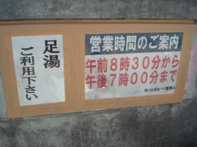 足湯の場所は、ぐらんぱる公園とは逆側の端のほうでした。別の日に行ったら足湯がお休みだったので、必ずいつもやっているわけではなさそうです。- 旅行時期