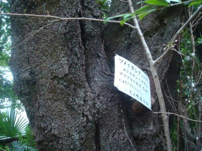 常盤木門から小田原城歴史見聞館(NINJA館)へ向かう途中にイヌマキの木があります。看板もあります。とても大きな木なので、全体を写真に収めるには、かなり離れた場所から撮影する必要がありました。近くから見上げてもその大きさを実感できると思います。