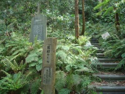 東勝寺跡から歩いて1分ほどなので、東勝寺跡とセットで見るのがよいでしょう。祇園山ハイキングコースの入口にありましたが、通行止めのロープが張られているので、少し離れたところから見るだけとなります。植物で埋め尽くされた場所でした。