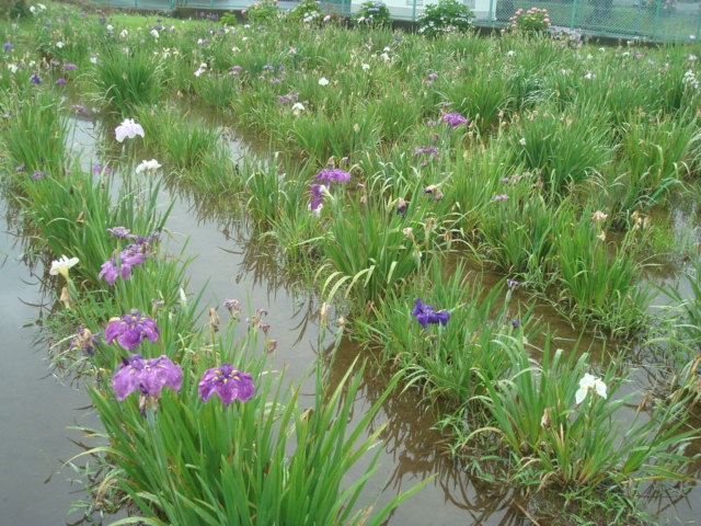 花菖蒲園の南側にある水辺の広場では6月中旬から下旬にかけて池の蓮が開花するようですが、雨天でしたので花菖蒲園を見るに留めました。- 旅行時期