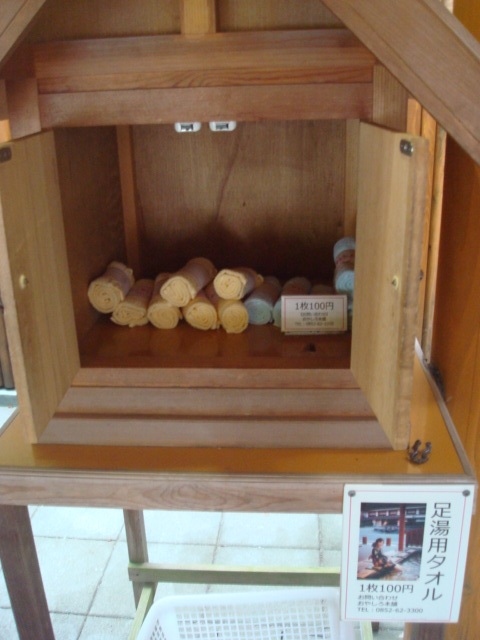 湯薬師広場にたらい湯があり、温泉を自由にテイクアウトできます。観光客と思われる人がお湯を汲んでいました。もちろん私ももらいました。