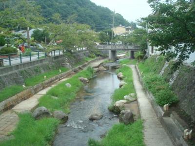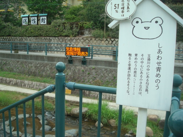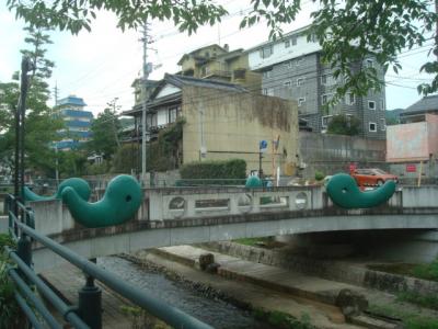 玉造温泉のシンボルとも言える橋です。姫神広場から南に2分程歩いたところにありました。緑色の勾玉が目立つので、すぐに気づくことができました。