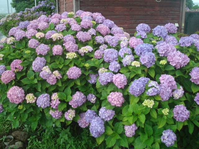 6月下旬、遊具のまわりにはアジサイが咲いていました。