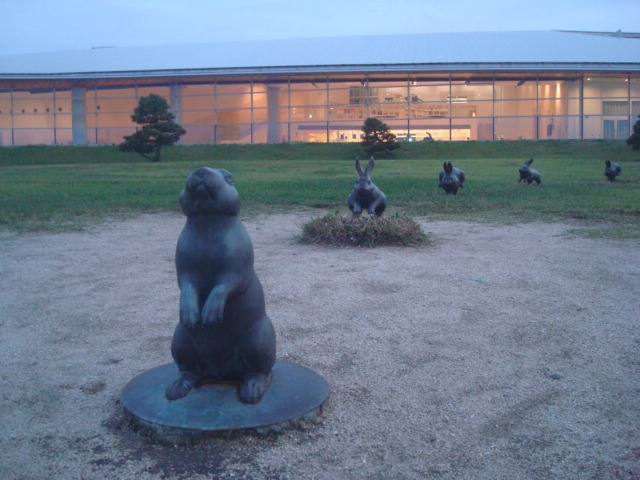 観光ガイドブックなどで有名なうさぎは屋外にあるので、散歩のついでに見ることができます。うさぎだけでなく、美術作品がいくつも屋外にあり、きれいな景色と共に作品を楽しめました。