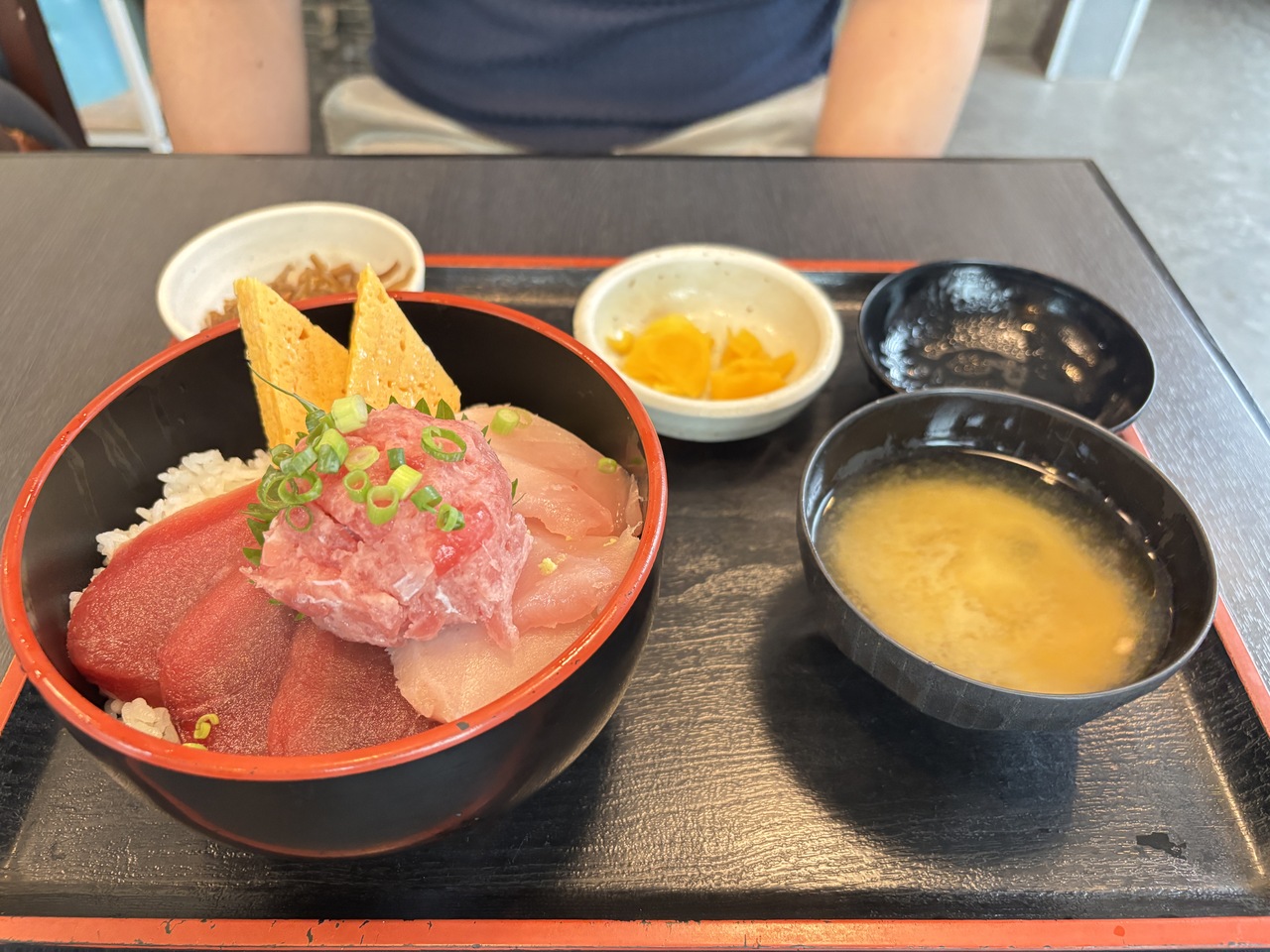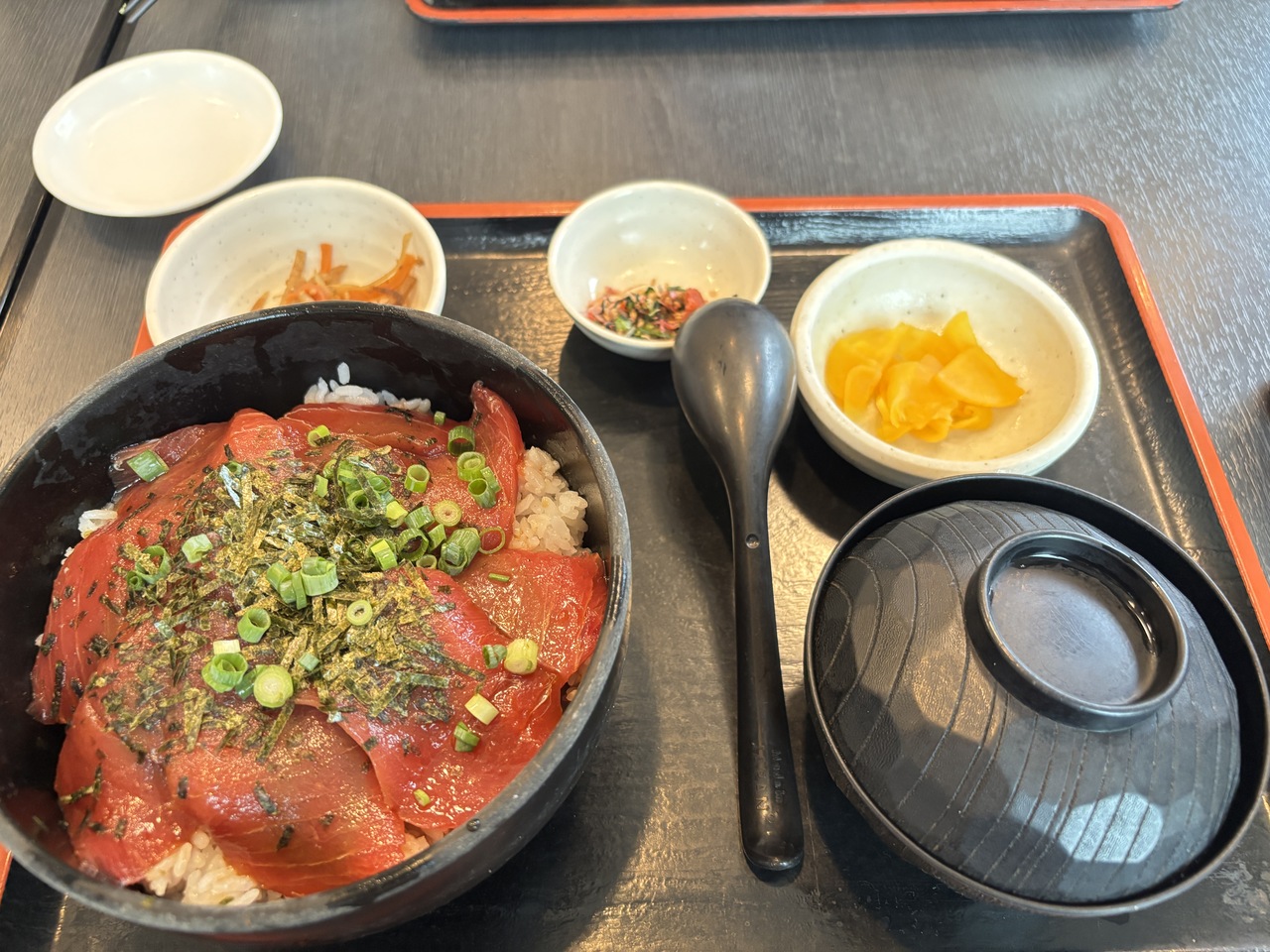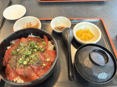 主人は三崎丼、私は天然本マグロの丼づけにしました。それぞれプラス100円でごはん大盛りにできました。丼づけの方は、スタッフさんに声かけると、お出汁をかけてもらえて、お茶漬けにできました。