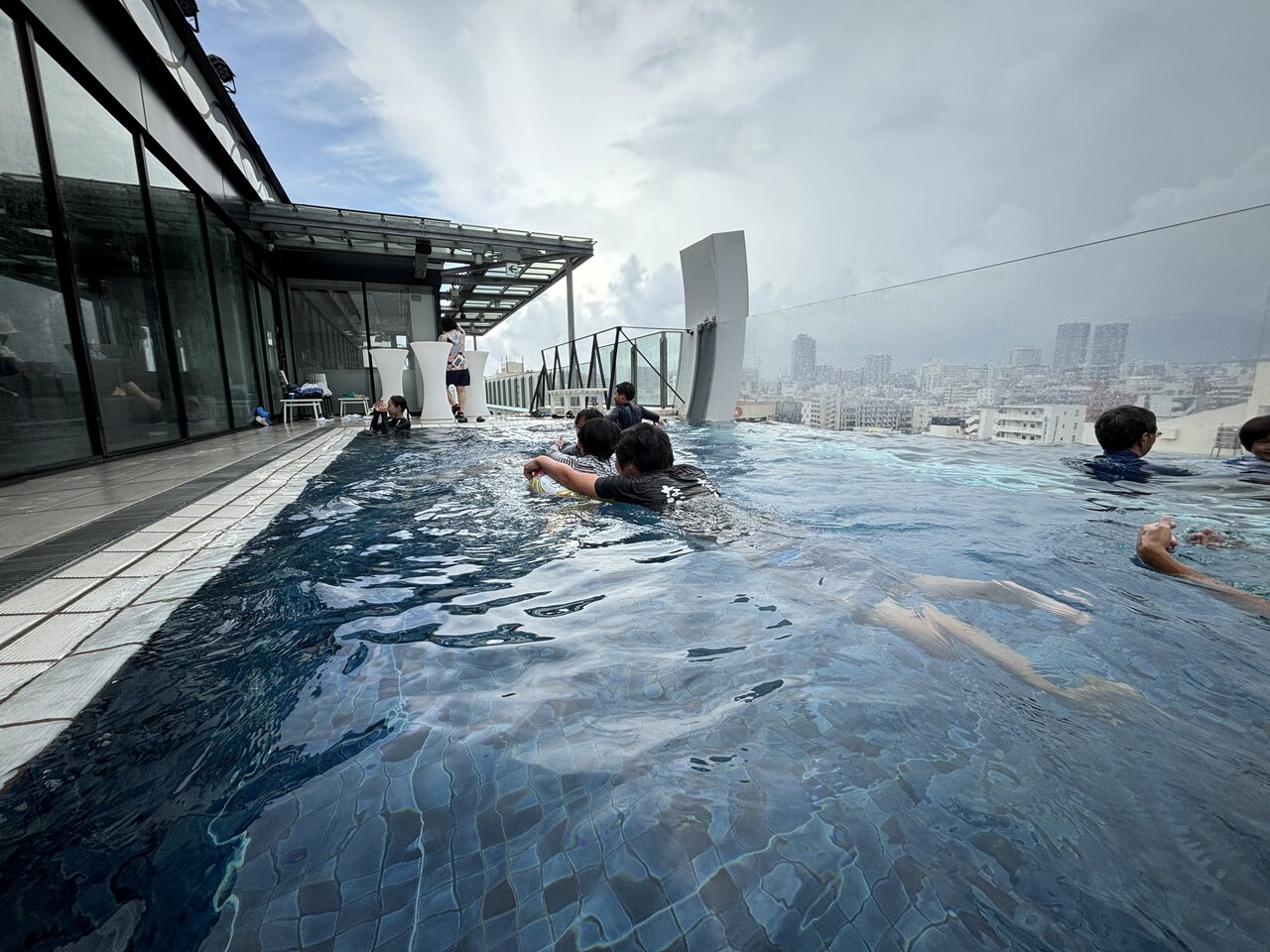 リゾートの大きなプールもいいですが、街中でビル群を見ながらのプールはなかなか新鮮で、親も楽しかったです。