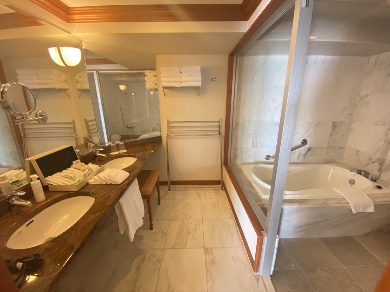 ラウンジアクセス付きのクラブルームに宿泊したので、チェックインはラウンジでウェルカムドリンクを頂きながらゆっくりでき、お部屋は広々快適で、オーシャンビュー!まさに南国リゾートそのものでした。