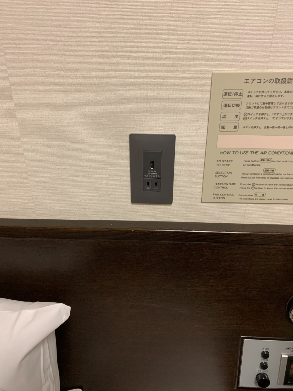 充電:マルチ対応のケーブルあり、枕元にUSBあり