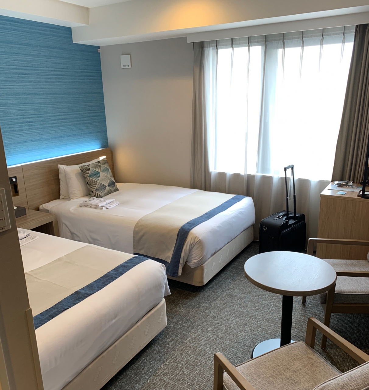ツインルームに宿泊しましたが、スーツケースを広げることもできるし、お部屋のお掃除も綺麗にされていました。隣の部屋の物音や水回りの音も特に聞こえなかったし、静かなホテルな印象です。ホテルの無料Wi-Fiもあって便利でした。