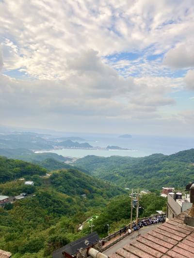 台湾2日目九份の自由散策中夫婦2人で阿妹茶楼でお茶したあとさらに石段を...