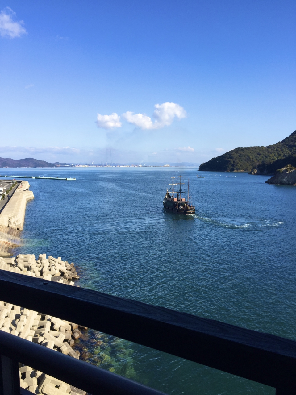 旅館から見えるお向かいの仙酔島まで旅館の横から「平成いろは丸」が出ていて、往復240円で乗船できます。海風が気持ちいいですよ!- 旅行時期