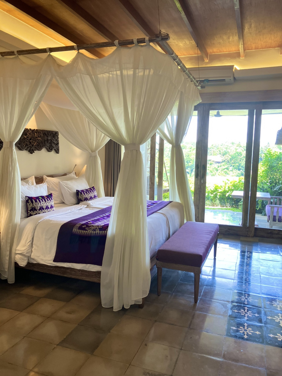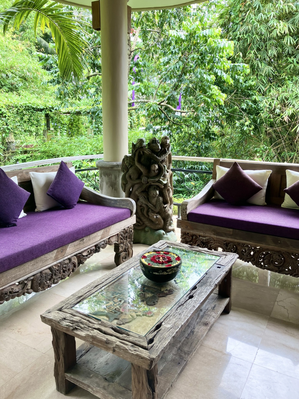ウブド中心部から少し離れたアユン渓谷を見下ろす静かな場所にある小規模な大人のリゾートです。全18室の内半数くらいの部屋にはプライベートプールが付いているため、メインプールは空いてました。プール付きのビィラでは無料でフローティングブレックファーストができるそうです。レストランでの朝食は予約無しでその場で5種類のコースから選べます。食事のレベルは高かったです。部屋の清掃は2度あります(夕方はターンダウン)。ウブド中心部までシャトルもあり、無料レンタサイクルもあります。欧米の宿泊客が多く、日本人の宿泊客は見当たりませんでした。渓谷沿いに建っていて危険なため、小さなお子様は宿泊出来ないそうで、満室でも落ち着いた静かなホテルでした。ディナー時のバリニーズダンスは、週1回レストランで催されるようです。生演奏ではないですが、可愛いらしい女の子が一生懸命に踊って感動しました。スタッフの皆さんはニコニコしてとても親切でした。日本好きなスタッフがたくさんいました。また泊まりたいと思ういいホテルです。