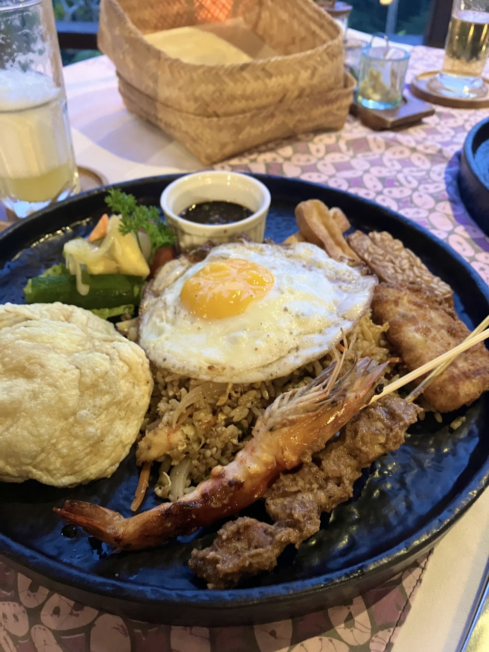 レストランは1つだけでオープンエア(ランチはとても暑い)、ブュッフェはほぼ毎日同じメニュー。ハエやアリがいたり、調味料や生卵が常温で置いてあったりと、気になる人は気になると思う。