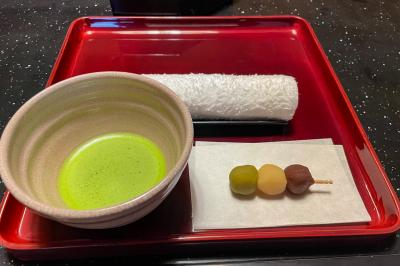 そしてお茶と和菓子も。これもちゃんと、坊ちゃん団子。間違いない心遣いで...