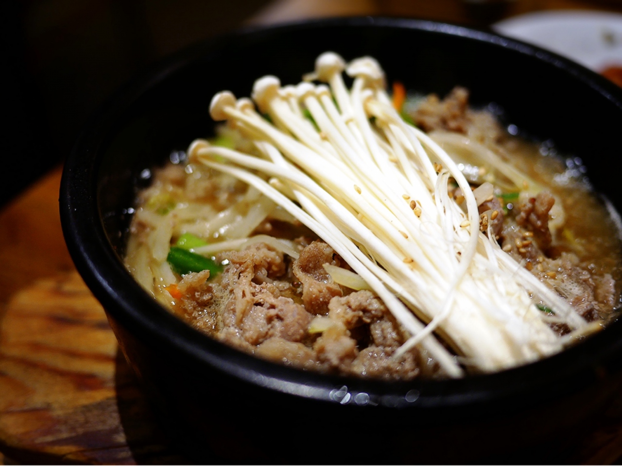 メインのドッベキプルコギは、土鍋に入って熱々での提供。