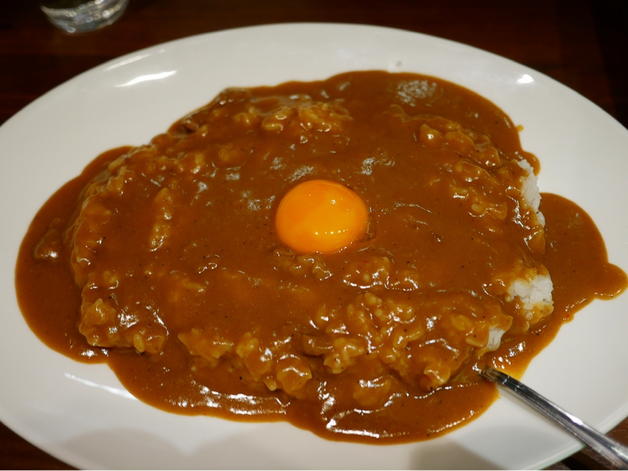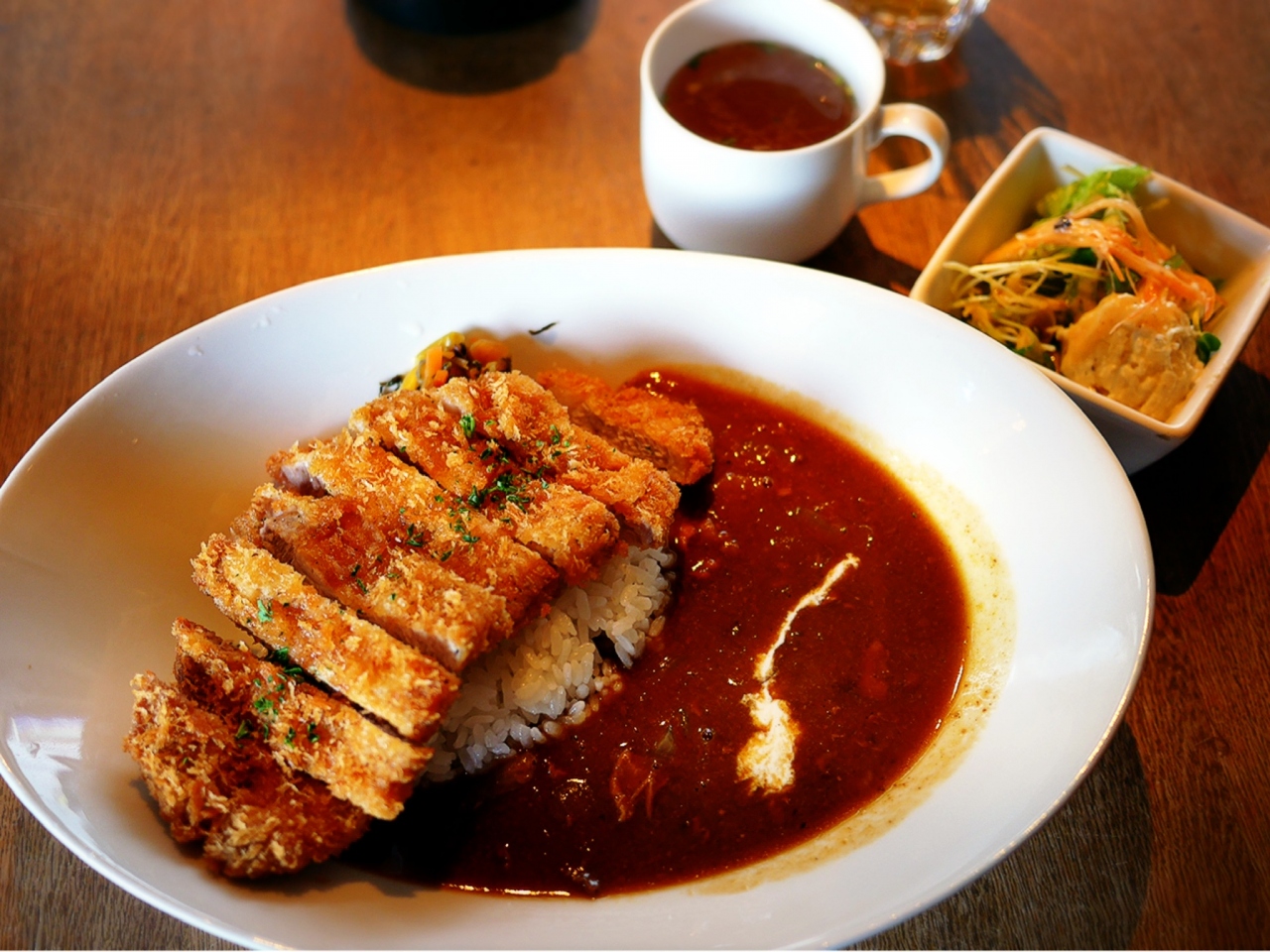 さて、メインのカツカレーですが、カツはやや薄めのタイプで、肉よりも衣の香ばしさを楽しむタイプ。個人的には、嫌いじゃないです。カレーは、具材が良く溶け込んでいて、まずまずの美味しさでしたが、もう少しスパイス感があったら良かったかなと思います。