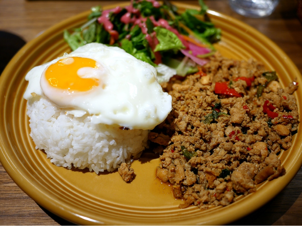 次にジャスミンライスに目玉焼きをトッピングしたガパオの提供。